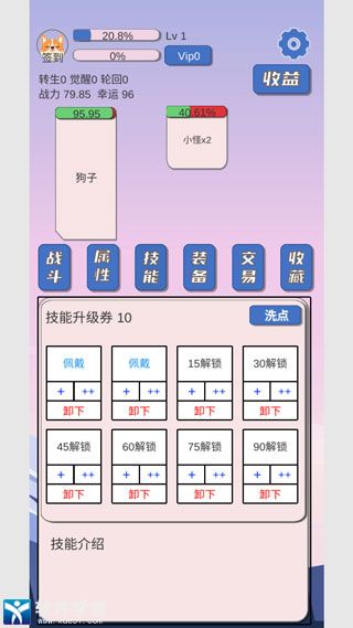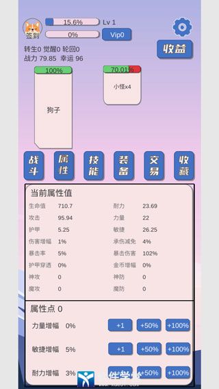 放置游戏,如图,狗子通过挂机就能战斗升级;
