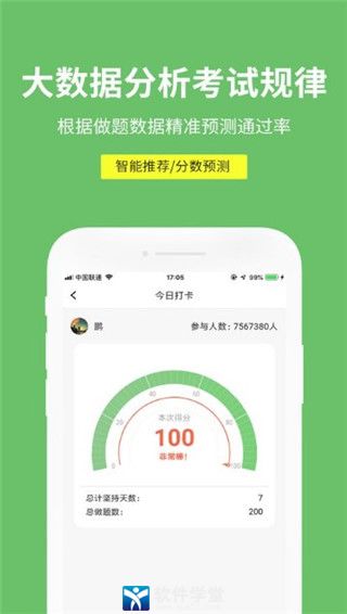 4、系统展示用户总做题数与正确率,显示累计坚持练习天数。