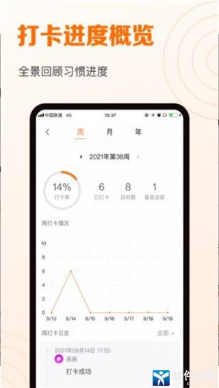 1、目标设定可以设置每日和一周的目标,并查看目标的完成状况。
