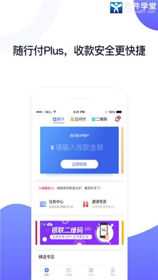 1、【支持多种收款方式】App支持刷卡、云闪付、二维码、手机Pay多种收款方式。