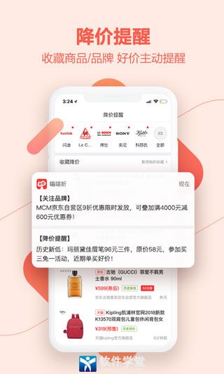 3、【商品降价追踪】对商品和品牌进行价格监控,一旦降价了就会实时更新优惠信息,你可以通过收藏关注品牌或者商品,一旦降价你就可收到降价提醒,不错过好价。