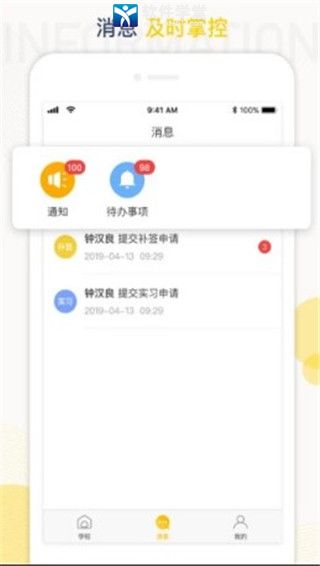 9、实习通知:学校重要事项发布可精准推送到每一位学生,全面无遗漏。