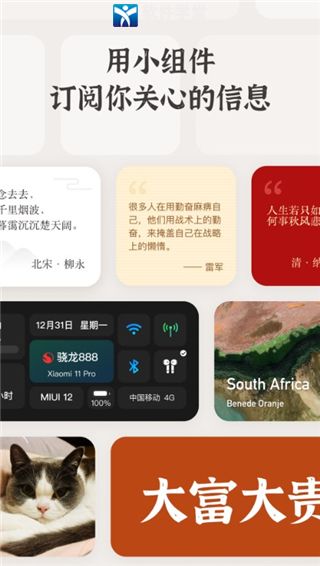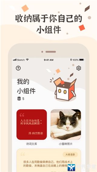 3、诗词文库、照片、语录等小组件内容一键收纳,分类整理。