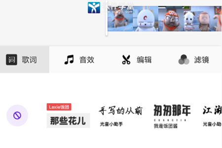 3、拍摄完毕或导入视频素材之后,大家就可以进入编辑界面,为视频添加歌词、设置音效、剪辑内容、设置滤镜。