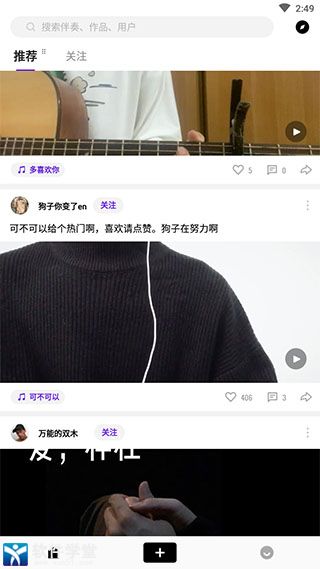 创作音乐的音乐人,在这里你将会遇见许多志同道合的音乐人,你们的才华将会在这里被展现出来。15分钟内的弹唱视频随意上传,各种伴奏、混响都是专业级的效果,更支持均衡器以及压缩器。你还可以给你的视频一键添加歌词字幕,让你的视频看起来更加舒适,各种模板都可以随意使用,在这里创建的视频可以投入到各种平台当中十分方便。你可以用你的音乐作品找到你真正的知音。软件还支持录音棚、ktv、巨星、动听、房间、自然、留声机等多种音效,更有耳返功能,让你唱歌更加有感觉。如果你是享受音乐的音乐人却找不到平台发布制作属于自己的作品的话就来下载