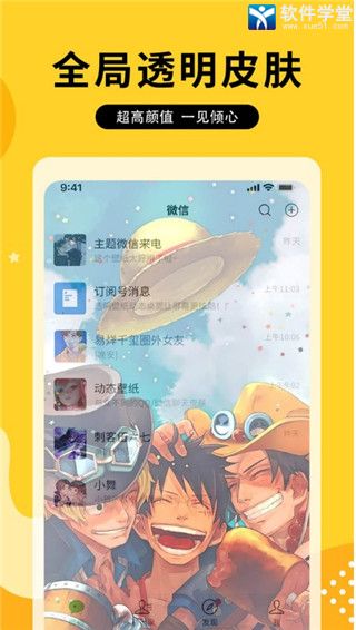 2、自己聊天背景主题自己定,支持透明桌面设置,也支持QQ、微信的聊天页面设置。