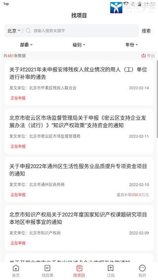 4、在找项目中可以看到各种正在或已经立项的政策说明。
