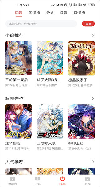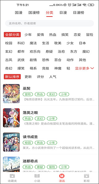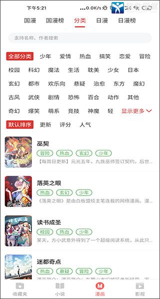 5、在“漫画”中,同样给大家带来了还想小说类型,可进行筛选,或输入关键字进行搜索查找;