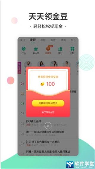 3、免费试听、下载,更有现金等你拿,在线试听、离线缓存、一键下载、制作手机铃声、闹钟等,完全免费,极省流量,更有官方打赏、做任务得金币等日常惊喜活动,不仅免费听歌还能赚取零花钱。