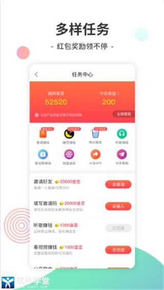 2、听歌红包,听歌可以赚零花,随听随赚,福利多多。