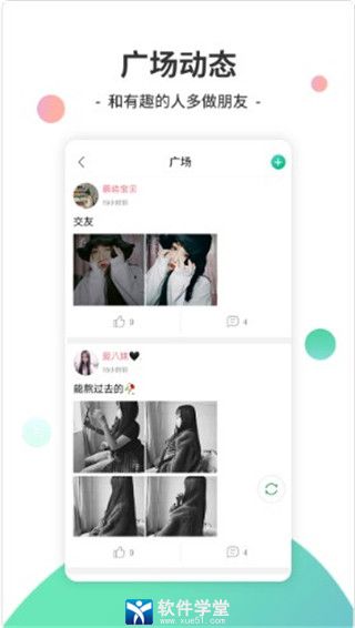 2、交友广场,发布你当下的心情感受,打造你个人的个性空间,寻找一见如故、心心相印的朋友。