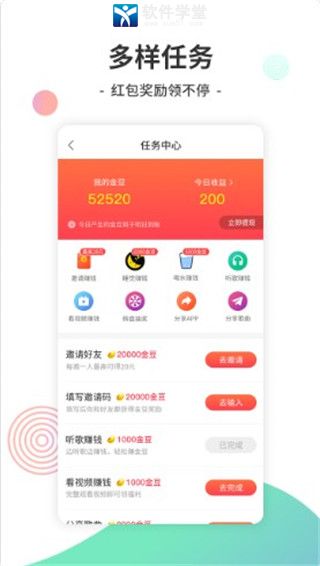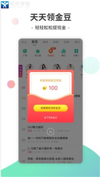 2、听歌红包,听歌可以赚零花,随听随赚,福利多多。