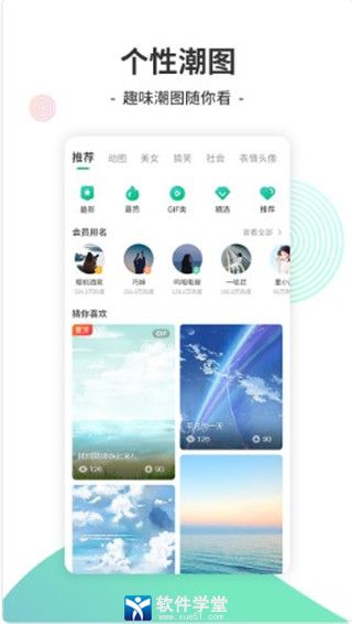 3、时尚潮图,热门表情包、男女头像、帅哥美女照片、动漫欧美图片等各种风格的潮图实时更新,免费下载。