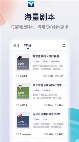 1、建立了多样化的辅助创作剧本的数据内容,方便用户来进行浏览和使用各种优质的功能。