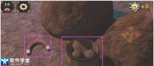 1、进入游戏关卡,拾取石头、长绳和火把。