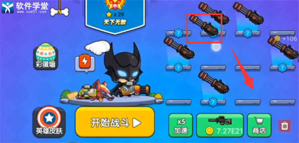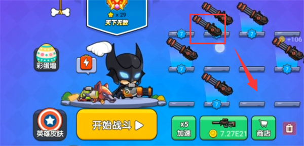 4、合成:每次战斗都会有大量金币或钻石奖励,在主界面中合成系统中用金币购买武器,每两种相同等级的武器便可进行合成升级,升级之后武器的威力和外形都会发生变化