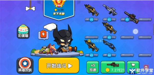4、武器:手枪、冲锋枪、暴力枪、狙击枪等传统武器+激光枪、反弹枪、冰冻枪、科技枪、火箭枪等各种创新武器,打法诙谐幽默