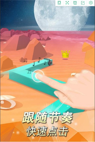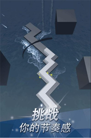 2、难度逐渐的增加,更多的障碍物随机的出现,掌握音乐的节奏进行躲避,突破手速极限。