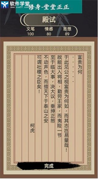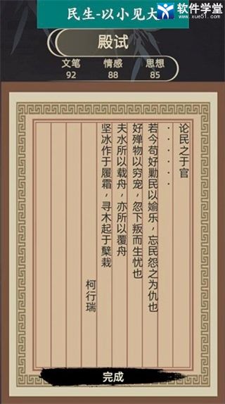 对于喜欢探索官场玩法的朋友来说,上面几篇应该对你有所帮助。先通过寺庙、客栈玩法快速提升属性(处世、学识、德行优先),尽量保证会试全部答对,剩下的就是最后一环:殿试。