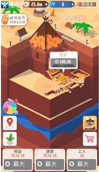 1、轻松的指尖点击操作,想办法提升工人们的挖矿效率从而让自己获得更多财富,还可以自由建造各种建筑。