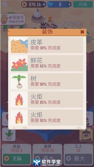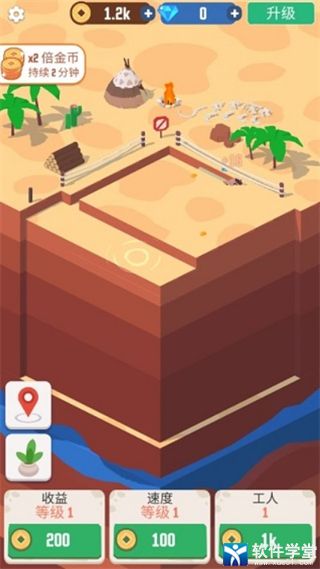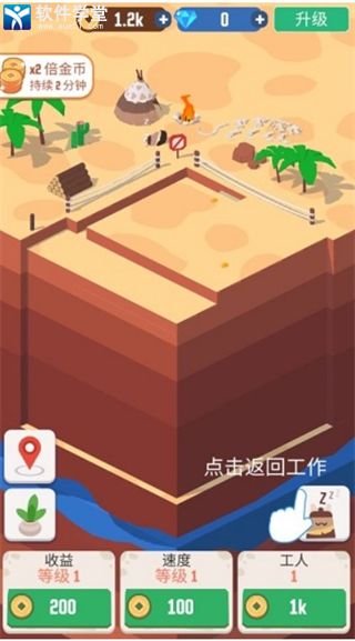 升级收益,增加金币数量;升级速度,增加工人的工作效率,减少玩家点击屏幕的次数;升级工人,可以增加工人数量。
