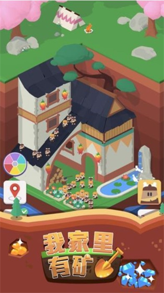 休闲冒险之旅吧。游戏画风可爱,采用了Q萌的卡通风格打造,简单易上手的操作玩法,非常非常适合玩家们用来打发无聊的闲暇时光。进入游戏,玩家将成为一个远近闻名的矿老板,你需要雇佣鼹鼠工人们帮助你开采矿场并建造一个个美丽的房子。超多丰富的鼹鼠工人,为我们提供了多种不同的选择。不同矿工所拥有的技能属性都是各不相同的,我们需要对它们进行合理分配,开采各种不同的矿物。为了提升挖矿效率,我们还可以对工人们进行升级,提升它们的挖掘与建造速度。同时,该游戏还我们提供了雪地、雨林、樱花与峡谷等多种不同特色主题场景你来解锁。