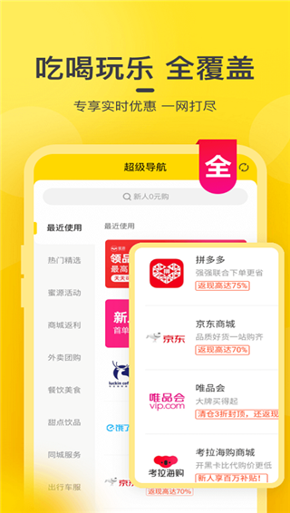 与淘宝、天猫、京东、拼多多、唯品会、苏宁、网易考拉等全网知名电商合作,一站式整合海量隐藏优惠券,千万人都在用的网购省钱利器。