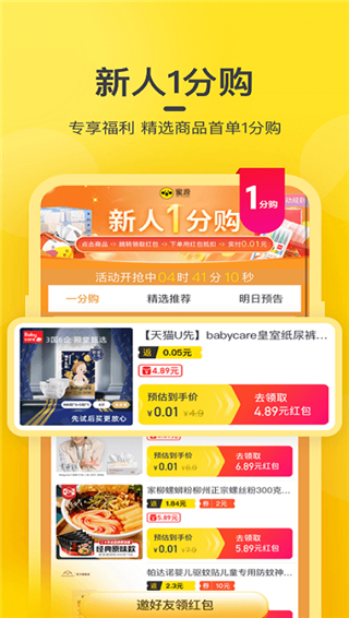 注册享优惠,首次下单相当于不用钱,新人免单专区数十款宝贝每日更新,0元也能领回家。