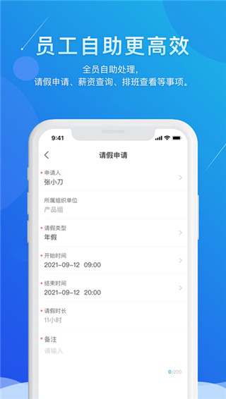 1、请假、加班、出差、年假申请手机端一键申请。