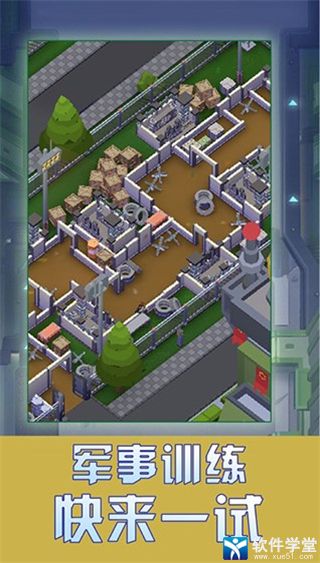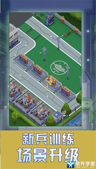 我要去当兵官方版游戏中一起体验一下吧。这是一款真实模拟士兵日常军事生活的模拟经营类手游。游戏画面简洁,玩法简单,通过可爱的卡通风格画面为广大玩家们构建了一个个庞大的军事训练基地,从宿舍群、食堂到日常训练基地,每一个场所都严格按照军事化制度来管理。而游戏中玩家作为一名军事指挥官,你不仅需要肩负起培养高素质人才的重担,还要管理好整个军事学院,提前规划军事设施的建设以及士兵学院的人才招募工作。从训练场地、新兵招募到士兵日常训练培养,都将由你一手掌管。