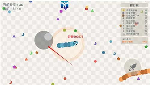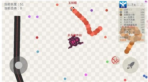 2、可以通过虚拟按钮来控制方向和熟读,前期建议多吃彩豆来壮大自己。