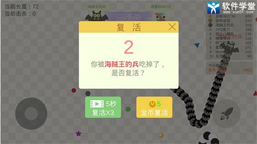 2、注意:当你的蛇头撞到另一条蛇的身体时,你就会被吃掉。