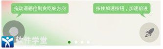 1、拖动摇杆控制贪吃蛇方向;按住加速按钮,加速前进。