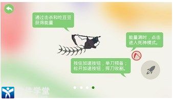 4、通过击杀和吃豆豆获得能量;能量满时,点击进入死神模式;按住加速按钮,举刀预备,松开加速按钮,挥刀收割。
