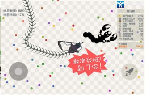 2、击败动物方法很简单,当贪吃蛇的头挨到另一条动物身体时,挨到的其他动物将失败。