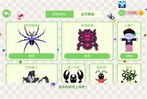 4、可以用苹果等复活,玩家可以在商城内购买喜欢的五毒,当然有些动物有加成。