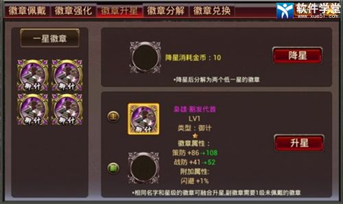 3、徽章碎片的使用策略很重要,推荐碎片优先用来兑换合适的徽章给需要的武将佩戴,然后强化主属性高的徽章,最后多的碎片再用来兑换升星徽章。