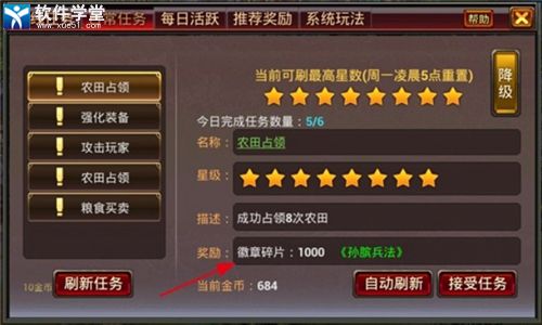 2、日常任务升级后,玩家若有需要,可花费金币降级奖励内容,将徽章碎片奖励恢复为军功奖励