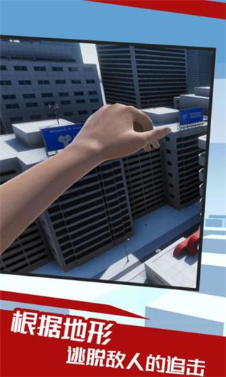 1、玩家在镜之边缘中以自由的来回在城市的不同角落,躲避反派的追捕,快速的达到自己的目标位置,完成跑酷挑战;