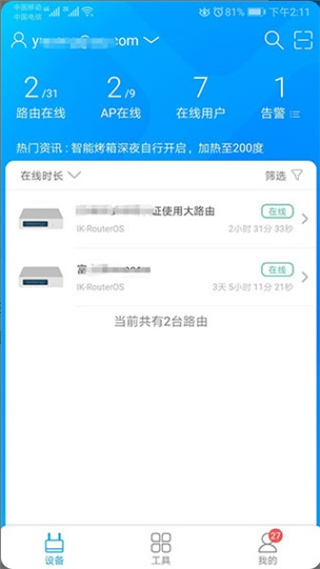 1、爱快用户还可通过本软件进行网络管理与维护,轻松实现移动运维。