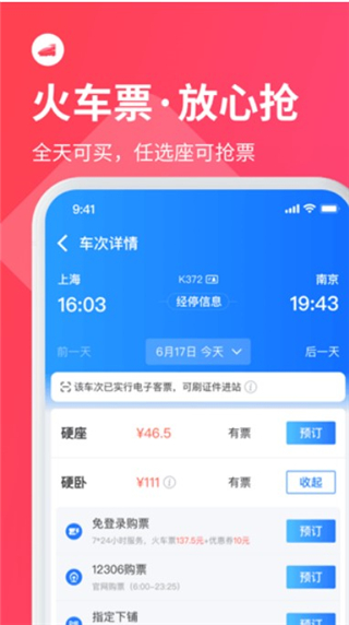 4、退改签及私人订制服务,体验更优秀,部分地区火车票支持电子票