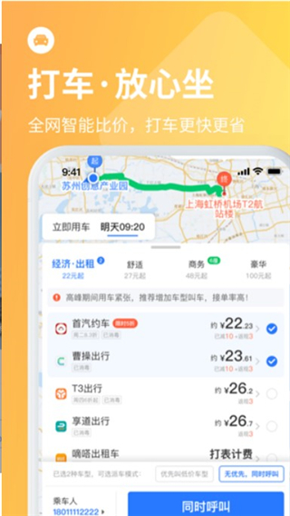 2、优选专车、曹操出行、首汽约车、滴滴出行、神州专车等多品牌集合,覆盖138个城市