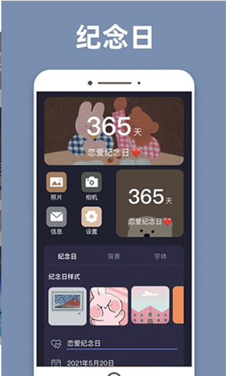 照片、日历、倒计时、纪念日(正计时)等等实用组件,组件背景图片均可随意设置,美化桌面得心应手。
