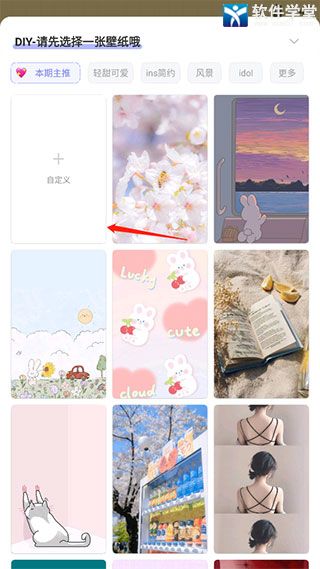 1、进入软件选择自己喜欢的锁屏壁纸,或者点击右上角进行DIY设置。