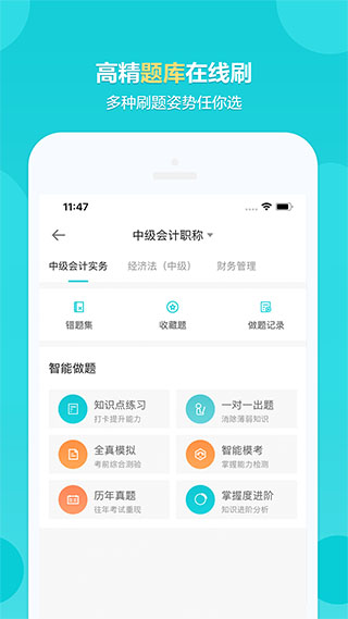 3、紧扣考试考纲,涵盖全部会计考试职称,畅享便利移动学习生活,随时随地轻松练习;