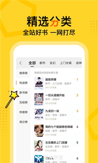 2、【分类齐全】全类别热门图书随心看,玄幻、奇幻、言情、仙侠、武侠、都市、历史、游戏、科幻、二次元等,给你想要的一切!