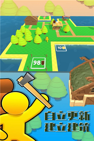 3、不停砍树让自己拿到很多的钱,成为最牛的达人,游戏中砍树也是很不错的,可以更好的升级这里的内容,实现出砍树的价值;