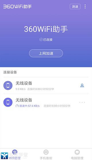 360WiFi助手手机版是北京奇虎科技有限公司专门针对手机端设计研发推出的一款wifi辅助软件工具和手机端文件传输工具,软件界面简洁清爽,没有任何广告弹窗打扰,致力于带给用户们更纯净的使用体验。功能强大而全面,可支持多方面应用的使用,能够帮助广大网友们直接通过手机来快速传递文件和进行手机备份等诸多功能,完成更方便快捷的文档管理功能。大家也可以通过这款软件对当前wifi进行管理,在取得了电脑端的授权后即可对手机文件进行备份,并对电脑进行远程访问管理。软件体积小巧玲珑,使用操作简便,绝对不会占用我们太多的手机内存。且WiFi加速测速功能,还能够让我们获得更快的网速体验。另外,在360WiFi助手软件内还有其他更多强大实用功能等你来探索,这里小编就不详细介绍了,感兴趣的朋友可自行探索!