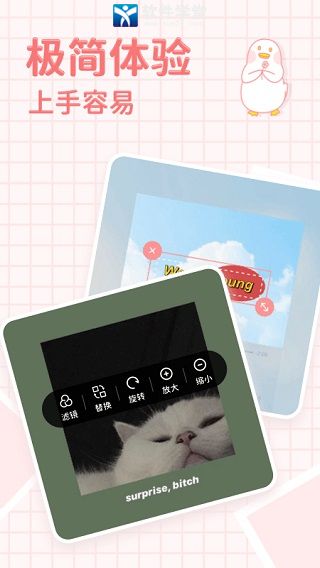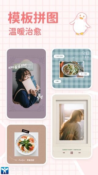 拼图鸭相机app是一款简单好用的手机拼图软件应用,软件界面精致可爱,功能丰富多样,为用户们提供了海量特色拼图模板素材,简单的使用操作让所有用户们都可以轻松制作出精彩大片。