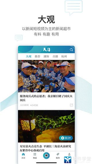 天目新闻app是一款非常不错的手机客户端新闻资讯服务平台,该软件内汇聚了众多丰富的热门新闻资讯内容,并拥有海量短视频直播资源与便捷的一站式生活办事功能,旨在为用户们打造一个集生活哦、服务、新闻、资讯于一体的软件平台。